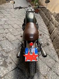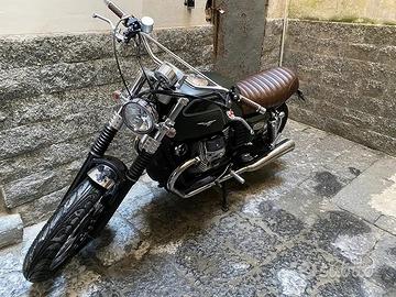 -Piastre di sterzo (+ cover blocchetto chiavi) -Riser con piastra + logo motoguzzi -Soffietti forcella -Porta strumento M.G. CHRONOCLASSIC (MOTO GUZZI V7) -motogadget chronoclassic -cover motogadget -sensore riserva -pompa freno radiale Braking -collare + leva frizione Braking -blocchetto comandi manubrio Specchio - Manubrio vintage con traversino amovibile 22,2 mm lungh. 815mm - cromato -tubi areonautici in treccia d'acciaio Reggi -faro e frecce CNC (collari diam. 40)pl -Faro SKYLINE LED Black (side mount) -relais luci -Supporti Poggiapiedi -Cover Poggiapiedi Knob -scarico slip-on FF by Fresco -Parafango anteriore slim Chrome (SEZ.114/34 SVIL. 340 - 2 PR) -Parafango posteriore Chrome(SVIL.650 DIAM.800 1 PBA 1PTR) -Portatarga -Luce targa micro led -Sella WRAP Cognac -Faro posteriore Old school 4 - led -Supporti frecce posteriori -Frecce Shin Yo Alu-Mini-Blinker ARIZONA -Relais frecce -Painting bicolore / doppia finitura painting fianchetti -Ammortizzatori Oram Cafe Racer Classic -Specchietti Barracuda end bar RETRO STONE CROMO -Manopole Barracuda CLASSIC MARRONE/ARGENTO -Gomme Continental Road Attack 3 Cambiato: -Serbatoi Fluido "NEXT" Black -disco BRAKE DISK WAVE FLOATING AL-HUB SK2 DIAM.310 -disco BRAKE DISK REAR -Pastiglie freno anteriore -Pastiglie freno posteriore mo.switch 2 -pulsanti MOTOGADGET -Loghi serbatoio Moto Guzzi (Aquila) Targa DL39294