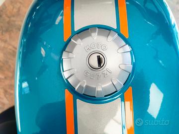 NOTE: Moto Guzzi V7 III Special in condizioni eccellenti, sia meccaniche che estetiche. ABS, Traction Control, tre mappature. Classico bicilindrico a V da 744 cc, affidabile, ricco di coppia e dai consumi contenuti. Ciclistica ottimizzata per un perfetto equilibrio tra comfort e stabilità. Impianto frenante Brembo. Contachilometri e contagiri separati, analogici con display digitale. Manubrio, maniglione passeggero e scarichi cromati. Parafanghi nero e in tinta. Cerchi a raggi. Sella in pelle nera. Livrea esclusiva Blu Zaffiro metallizzato con bande laterali arancioni e argentate, ispirata alla storica V750 S3 degli anni '70. Completamente finanziabile, anche senza anticipo, con soluzioni flessibili e personalizzate. Servizio di consegna a domicilio in tutta Italia con trasportatori specializzati (costo da conteggiare a parte a seconda della distanza).