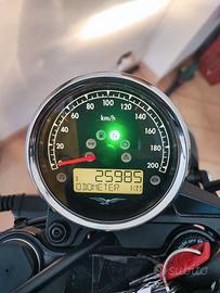 Vendo Moto Guzzi V7 Stone del 2018, in ottime condizioni generali e sempre mantenuta con cura. Perfetta per chi vuole una moto dal carattere autentico, agile in città e divertente nei giri fuori porta. La moto viene venduta completa di diversi accessori di qualità, già installati: 1)Telaio per borse laterali C-BOW Realizzato su misura e rinforzato, ideale per viaggi e uso quotidiano. 2)Telaio per bauletto posteriore Perfetto per montare un top case e aumentare la capacità di carico. 3)Paramotore Utile sia per protezione sia per un look più robusto. 4)Kit di sollevamento per il letargo invernale Comodissimo per mantenere la moto sollevata e preservare pneumatici e sospensioni durante i mesi di fermo.