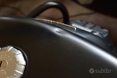 - Nell'estate 2019 ha subito una caduta, su rettilineo, a circa 60 km orari, a causa di una buca. Da qui le ammaccature nel serbatoio visibili in dettaglio nelle foto. Funzionalmente non creano problemi, esteticamente ovviamente non sono il massimo. A seguito di caduta, sono stati sostituiti gli scarichi ed è stato ricontrollato l'assetto delle sospensioni. Ora prende buche e dossi senza spostarsi di un millimetro