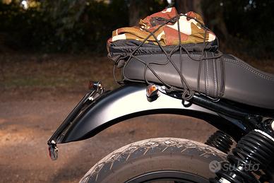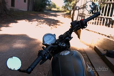 In ottime condizioni con poco più di 23000 km, sempre tagliandata in officina ufficiale , leggermente custommizzata con specchietti end bar, terminali di scarico "Agostini" Mandello del Lario (entrambe omologati), rivestimento tubi di scarico con nastro di tela termica, barre paramotore Givi, modifica porta targa con inclinazione regolare c. d. s., trascurabili segnetti di normale utilizzo sul serbatoio, cinghia in pelle nera para serbatoio, gomme Dunlop Mutant 90%