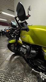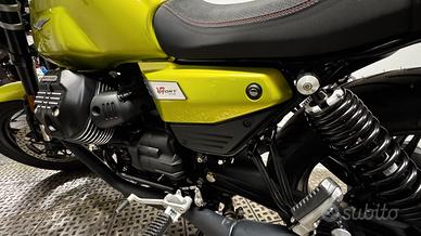 Stile e cura dei dettagli si uniscono alla tecnologia per esaltare il leggendario carisma di V7. Restano gli elementi più iconici di V7 come il serbatoio scolpito da 21 litri e le teste dei cilindri, simbolo del V-Twin di Mandello, ma si evolve il motore e migliorano le prestazioni. Le linee sono sinuose e il DRL che disegna la sagoma dell'aquila la rende inequivocabilmente una Moto Guzzi.