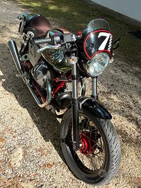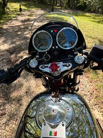 Per acquisto altra tipologia, vendo Moto Guzzi V7 Racer 2014 serie numerata 2328. Uniproprietario, 29.000km, rimessaggio in garage su cavalletti e telo copri moto, manutenuta meccanicamente/esteticamente in maniera maniacale ed in condizioni da vetrina, solo con prodotti di qualità, pneumatici nuovi (luglio 25). Tabella interventi effettuati visionabile. Viene proposta con nutrita lista di accessori e migliorie che la rendono ancor più gustosa senza alterarne l’aspetto di serie, oltre naturalmente alle parti originali sostituite e ben custodite. Ciclistica: Kit biposto originale Guzzi sella + pedanine + maniglie cromo Cupolino nero sport touring Puig Kit forcella precarico e assetto + olio Öhlins Ammortizzatore di sterzo Gomme Metzeler Roadtec 01 nuove Viteria titanio ed Ergal Pastiglie freni Brembo SC Leve freno regolabili ed antirottura V-Trec Motore: Scarichi Mistral omologati con dbk Candele racing Brisk AOR12 in argento Filtro aria Sprintfilter P08 Olio Bardahl XT4S 10W60 Olio coppia conica Royal Purple MaxGear 75W140 Filtro vapori olio esterno Batteria lithium ion Skyrich Accessori: Presa USB su attacco originale Guzzi Puntale originale Guzzi Luce stop led con gemma fumè originale Lampada Osram Night Breaker 200 x Led posizione Clacson corno Evermotor 118db Tappo olio Ergal con termometro Specchietti bar end La moto già presenta di serie ammortizzatori Bitubo completamente regolabili, pedane in alluminio regolabili, semimanubri ed il bellissimo abbinamento telaio rosso/serbatoio cromato oltre a tutte le sue caratteristiche peculiari che la rendono unica nel panorama della serie V7 e di sicura rivalutazione collezionistica. Il prezzo finale comprende tutto quanto esposto sopra, escluse spese di passaggio. Cortesemente NO SCAMBI o “proposte alternative”, NON vendo accessori separatamente (solo se eventualmente rimasti dopo vendita moto), disponibile a contrattazione dopo visione con seriamente interessati.