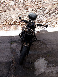 Vendo Moto Guzzi V7III STONE, come nuova, tagliandata, accessoriata, con ammortizzatori alti + gli originali come in foto. Gomma posteriore 140, bauletto e portapacchi, porta telefono e caricatore USB. Da notare gli specchietti e il proiettore.