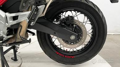 DEK:[10533741] OTTIME CONDIZIONI COMPLETAMENTE ORIGINALE - VALIGIE LATERALI GUZZI - ABS - TCS - SCHERMO TFT - CRUISE CONTROL - RIDING MODE - CAVALLETTO CENTRALE Motore: bicilindrico a V 90° da 853 cc, raffreddato ad aria, 2 valvole per cilindro, alimentazione a iniezione elettronica. Potenza: circa 80 CV a 7.750 giri/min. Coppia: circa 80 Nm a 5.000 giri/min. Trasmissione: cambio meccanico a 6 marce, trasmissione finale ad albero cardanico. Telaio e ciclistica: telaio tubolare in acciaio ad alta resistenza; forcella anteriore rovesciata Ø 41 mm con regolazione di precarico molla e estensione idraulica, escursione circa 170 mm; sospensione posteriore con forcellone doppio braccio in alluminio + monoammortizzatore laterale regolabile, escursione circa 170 mm; cerchi a raggi: anteriore 19'' con pneumatico 110/80-19, posteriore 17'' con pneumatico 150/70-17; freno anteriore doppio disco Ø 320 mm con pinze radiali a 4 pistoncini, freno posteriore disco Ø 260 mm con pinza a 2 pistoncini; dotata di ABS e controllo di trazione con modalità multiple ("Strada", "Pioggia", "Off-road"). Altezza sella: circa 830 mm. Peso: circa 208 kg a secco (in ordine di marcia circa 229 kg). Serbatoio: capacità circa 23 litri. Stile: moto "adventure / touring" con forte richiamo al design retrò: linee pulite, ruote miste (19''/17'') per adattarsi a strade e sterrati leggeri, finiture curate, posizionamento "all-in" per viaggiare ma con un'identità distintiva tipica della casa. Carattere: pensata per chi cerca una moto versatile: capace di affrontare città, extraurbano, viaggi leggeri e persino sterrati moderati grazie alla ciclistica e alla geometria; motore pieno e caratteristico, cambio a 6 marce, trasmissione cardanica per maggiore praticità; ideale per turismo e guida