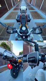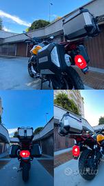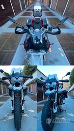 E' dunque in ottimo stato, con solo 8900 km percorsi e ancora in garanzia. Ho aggiunto, nel tempo, 2 borse laterali, un bauletto posteriore comodo per girare anche in città o nel traffico se si devono portare poche cose con sè e il cavalletto centrale.