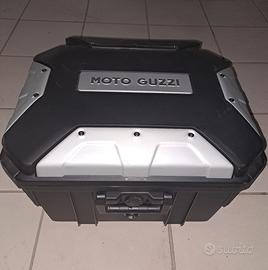 La moto al momento è provvista di piastra bauletto Givi Monokey, ma è disponibile la piastra originale dedicata per il bauletto Urban Moto Guzzi 40 lt.