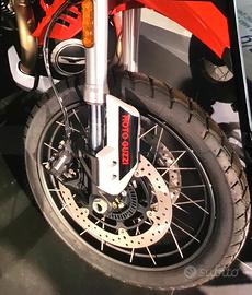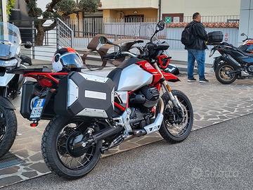 Optional : Parabrezza Alto Touring , Cavalletto Centrale, Manopole Riscaldate, Bluetooth Guzzi e kit vivavoce originale Guzzi , Trittico Borse Viaggio Guzzi Metal original, Cuscino passagero , Pneumatici Tacchettati per uso stradale e off-road, scarico sportivo finale Black Carbon.