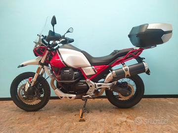 NOTE: Una enduro stradale dall'autentico carattere Moto Guzzi, maneggevole, versatile e confortevole. Perfetta per i tragitti casa-lavoro, le gite fuoriporta, i viaggi lunghi e l'off-road leggero. ABS, Controllo Trazione MGCT, Tre modalità di guida (Strada, Pioggia Off-Road), Cruise Control. Ruote a raggi (Ant. 110/80 R19; Post 150/70 R17), con trattamento tubeless (BART Factory). Sospensioni Ant. e Post. regolabili. Luci a LED. Presa USB al manubrio. Paramotore tubolare. Protezione coppa olio. Parabrezza alto regolabile. Deflettori Paramani GIVI. Bauletto Centrale GIVI Maxia (per 2 caschi integrali). Completamente finanziabile, anche senza anticipo, con soluzioni flessibili e personalizzate. Servizio di consegna a domicilio in tutta Italia con trasportatori specializzati (costo da conteggiare a parte a seconda della distanza).