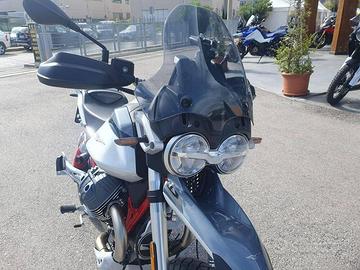 Bicilindrico a V 90° caratteristico Moto Guzzi, raffreddamento ad aria, sospensioni regolabili, ruote a raggi da 19" (anteriore) e 17" (posteriore), serbatoio da 23 litri. Design retrò-moderno con protezioni e paracoppa.