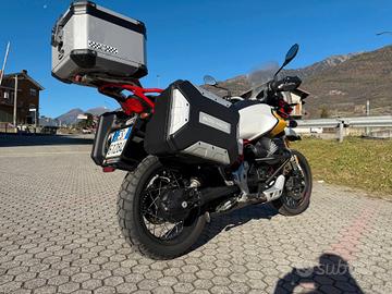 La Moto Guzzi V85 TT è una enduro dal fascino classico,pensata per chi ama viaggiare con stile e avventura. Unisce il carattereinconfondibile del bicilindrico trasversale Guzzi a linee retrò e tecnologiamoderna, perfetta tanto per i lunghi viaggi quanto per le strade di tutti igiorni.
