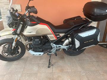 Vendo .. causa poco utilizzo... Moto Guzzi V85 TT Travel .. colorazione Sabbia Namib che si accoppia al telaio grigio ed è equipaggiata con pneumatici Michelin Anakee Adventure. Piattaformaa Moto Guzzi MIA, la quale permette di collegare lo smartphone al veicolo estendendo le funzioni della strumentazione.