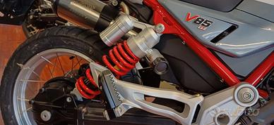 V85 Strada e V85 TT Euro 5+V85 unisce il potenziale dei moderni modelli Adventure con lo stile evocativo delle moto di Mandello del Lario. Motore bicilindrico a V raffreddato ad aria e l'inconfondibile firma DRL dell'aquila, sono l'incarnazione del DNA di Moto Guzzi. Con V85, l'avventura prende una nuova forma, mantenendo intatta la sua autenticità. Pratica, essenziale e leggera: V85 è nata per viaggiare. Potrai passare più tempo esattamente dove vuoi: a macinare chilometri grazie a un serbatoio da 23 L, parabrezza regolabile in altezza su 5 posizioni, riding mode dedicati, cruise control e tanti altri dettagli che rendono la guida di V85 sempre fluida e sicura, indipendentemente dal carico o dal tipo di avventura che ti aspetta. Il feeling con V85 è immediato. Merito della dotazione elettronica completa e perfettamente accordata all'erogazione del bicilindrico Euro 5+ da 850 cc: piena e fluida dai bassi regimi fino alla potenza massima di 80 CV, ottenuta grazie all'adozione della fasatura variabile delle valvole. V85 risponde ad ogni tua richiesta di avventura con un'esperienza di guida sempre coinvolgente.