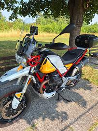 Vendo per cambio tipologia/marca Moto Guzzi V85TT Evocative graphics giallo sahara del 2019. Revisione effettuata a giugno 2025. Gli adesivi rossi "Moto Guzzi" di ricambio sia per la ruota anteriore che posteriore sono compresi. Parabrezza di serie Moto Guzzi fumè, parabrezza medio marca Isotta, parabrezza grande marca Isotta (quest'ultimo montato). Faretti supplementari Interphone cablati su impianto originale. Telecamera anteriore e posteriore sotto chiave e sarà consegnato anche il cavo con comando ausiliario per scattare foto (per chi lo volesse montare a manubrio). Sistema Guzzi Mia con navigatore valido fino al 2026 compreso. Clacson a chiocciola marca FIAMM potente (il clacson originale sarà fornito). Manopole "Moto Guzzi" (le originali saranno fornite). Ganci "di servizio" montati sui braccialetti degli specchietti. Presa USB supplementare sul cruscotto (la stessa di serie ma montata a destra ed entrambe possono funzionare in contemporanea). Porta telefono/navigatore/altro marca GIVI con barretta diametro 22 e con attacco a "palla"( una barretta di diametro 12 sarà fornita). Navigatore Android 5" funzionante a cavo o wireless con le stesse funzionalità di quelli per auto (funziona anche con Apple). Lo stesso si può smontare "al volo" e mettere in tasca lasciando il guscio di alloggiamento sulla moto (si può anche cablare sotto chiave con i cavi che saranno comunque forniti). Comando bluetooth sul manubrio per telefono e/o interfono e/o navigatore. Cavalletto centrale. Borsa serbatoio GIVI da 5lt sistema "tanklock" con relativo modulo di aggancio. Bauletto "monokey" GIVI da 30lt con relativa piastra di aggancio (la piastra originale sarà fornita). Il porta telefono "Quadlock" sul manubrio non è fornito ma se ne può parlare.