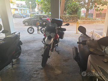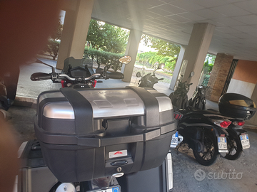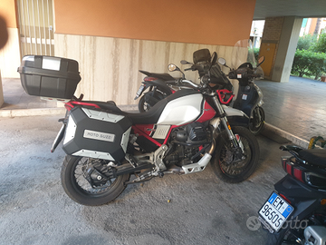 MOTO DA VETRINA, CAVALLETTO CENTRALE, PARABREZZA TOURING ALTO, PARAMOTORE, PARACARDANO, BORSE LATERALI RIGIDE MOTO GUZZI URBAN, BAULETTO GIVI TREKKER DA 46 LT, PIASTRA GIVI PER 85TT. RUOTE TUBBLESS