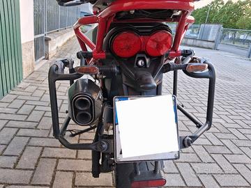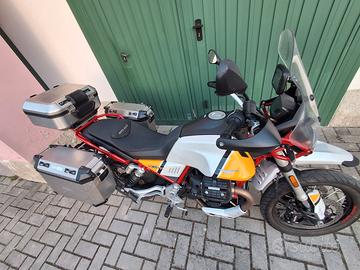 Vendo V85TT come da immagini. Attualmente la moto è in officina Guzzi per tagliando 30.000km e cambio gomme. Descrizione e allestimento: - colorazione Evocative Graphics - moto guzzi MIA - scarico HP corse - decatalizzatore HP corse - filtro aria sportivo lavabile - mappatura UP Map by Guareschi - supporto porta cellulare -piastra porta case posteriore in inox disegnato da me (vedi foto) - inserti paramotore by Guareschi - allestimento bauli laterali in alluminio Givi Trekker 35l - case posteriore in alluminio Givi Dolomiti 30lt - unica chiave per intero allestimento Givi - parabrezza touring - modifica dell'installazione delle frecce posteriori, studiata da me con particolari in stampa 3D per adattamento ai telai Givi senza dover spostare le frecce nella parte bassa del portatarga. N.B. tutti i telai di supporto dei Trekker laterali hanno fissaggio a camme e quindi rimuovibili in pochi minuti, inoltre il telaio in acciaio di supporto sul portatarga modificato da me anch'esso e removibile con n°1 vite, così quando non si usano i bauli laterali, si può godere delle linee pulite della V85TT. Disponibili tutti i pezzi originali (terminale di scarico, catalizzatore, parabrezza basso, mappatura centralina originale). Visionabile dei primi giorni di maggio, se interessati ho altre immagini da poter inviare.