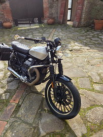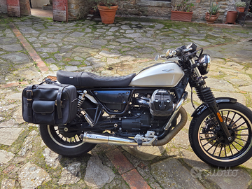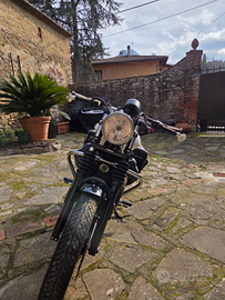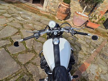 Vendesi moto guzzi v9 in perfetto stile cafè racer . Tenuta benissimo con diversi lavori effettuati,sound pauroso, manubrio drag bar , frecce e fanalino posteriore in led , sella originale comfort (450 euro),fascia serbatoio in pelle,tabbo serbatoio originale cromato,scarichi aperti mivv exhaust , barre paramotore, parafango anteriore corto e valige originali misto pelle con copertura per pioggia .
