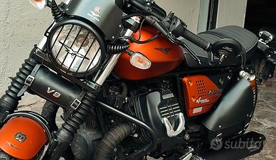 Moto Guzzi V9 Bobber Sport del 2020, km 18.800, arancione Sport, scarichi Agostini Mandello (più scarichi originali ovviamente), ammortizzatori Öhlins regolabili, forcelle Andreani regolabili, accessori originali Guzzi (leve, specchietti end bar, paracilindri, bende collettori, soffietti steli forcelle), paramotore, borselli laterali, griglia faro, sempre tagliandata, condizioni assolutamente perfette, gomme al 90%, pastiglie freni 90%, eventuale doppia e tripla sella (anche passeggero) vendute a parte. La vendo con sua sella monoposto originale e mai usata (non in foto). Moto appena revisionata. Tenuta maniacalmente. Vendo ?8.600 trattabili (ha montati ?4.000 di accessori) presso L.M. Chopper di Coccaglio (BS) tel. 333 958 3018. Anche possibilità di finanziamento. No offerte irricevibili.
