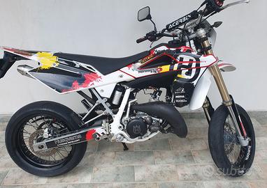 Motard Husqvarna SMS 125 2 tempi, anno 2009, 33.000km, moto guidabile con patente A1, omologata per 2 persone. Motore revisionato a 32.400km, sostituite varie componenti (biella, pistone, cuscinetti vari, pompa acqua, carburatore, ecc...), posso fornire foto degli interventi eseguiti. Il motore è stato revisionato prima di avere delle rotture, perciò la moto era ancora marciante prima della revisione del motore (e lo è tutt'ora)