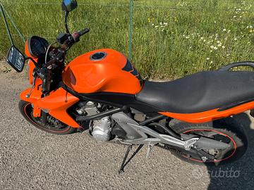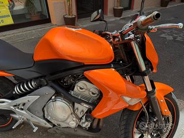Kawasaki ER-6N 649 del 2007 – 49.000 km – Riverniciata – Perfetta Testo annuncio: Vendo Kawasaki ER-6N 649cc anno 2007 colore arancione metallizzato originale. La vendo per passaggio a cilindrata superiore. Moto in condizioni eccellenti: carrozzeria completamente riverniciata da poco a regola d’arte, pari al nuovo come da foto. Meccanica perfetta, nessun lavoro da fare. DETTAGLI: Anno: 2007 Km: 49.000 effettivi e documentabili Revisione: Valida fino Aprile 2027 Bollo: Pagato per tutto il 2026 Batteria: Nuova Tagliandi: Sempre eseguiti regolarmente Proprietari:[metti 2°/3° proprietario] ACCESSORI MONTATI: Portatarga corto omologato Tamponi paratelaio Paraserbatoio Cerchi con filetto arancione Mai pista, mai incidenti. Sempre tenuta in garage. Il bicilindrico 649 Kawasaki è famoso per affidabilità e bassi consumi. Ottima sia per patente A2 depotenziata che per patente A. PREZZO: 2.600 € leggermente trattabili La moto si trova a Borgo Val di Taro (PR) ed è visibile su appuntamento. Prova su strada solo con patente valida e lasciando una caparra. Vendo solo a persone realmente interessate. No perditempo, no scambi con altre moto.