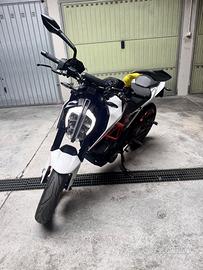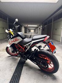 Vendo, per passaggio a categoria superiore, ktm duke 390 con 16500km, ideale soprattutto per chi è ancora principiante e intende approcciarsi al mondo delle due ruote, semplice e maneggevole da condurre. -Tagliando e revisione effettuati a settembre -Pastiglie freni anteriori sostituite da poco -Mai incidentata ne caduta da fermo, sempre tenuta in garage e in inverno su cavalletti e con batteria staccata -Doppia chiave presente. Prezzo leggermente trattabile Per qualsiasi info scrivetemi.
