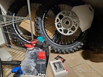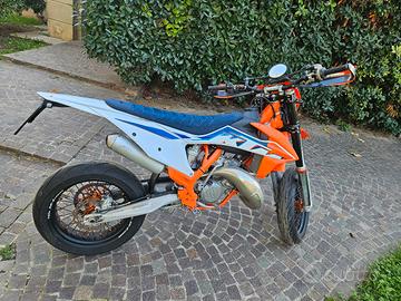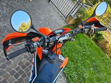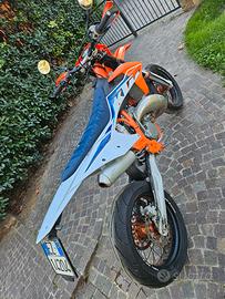 KTM SX 125 targata, usata solo in strada, seminuova, omologazione Motard, Statore con luci, Tachimetro digitale, contakm, Cerchi Faba Supermoto con gomme pilot, Disco anteriore 320mm + supporto pinza, Corona supermotard. In dotazione Kit cross con cerchi+gomme tassellate nuove.