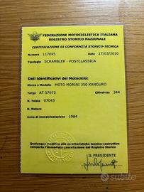 Vendo Moto Morini 3 1/2 Kanguro marciante, motore ottimo, piccole sistemazioni da fare, conta km, ecc Moto storica certificata FMI