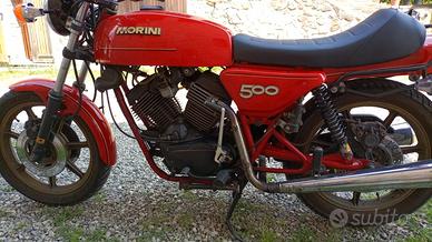 Vendo per inutilizzo Moto Morini 500 Sport. Eccellenti condizioni estetiche e funzionali, acquistata seminuova nel 1992, da allora tenuta sempre in garage e assistita da meccanico ex dipendente Moto Morini. Completamente originale, chilometraggio reale. Uniche modifiche: rimozione manubri sport con manubrio turismo e relativa piastra, sostituzione rubinetto elettrico con rubinetto convenzionale, eliminazione protezione tubo di scarico sinistro. Regalo ammortizzatori posteriori Marzocchi a gas, utilizzati per un certo periodo.