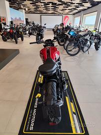 CiclisticaTelaio a traliccio in acciaioForcella anteriore USD Ø 43 mmMonoammortizzatore posteriore regolabileForcellone in alluminioPeso circa 200 kgAltezza sella 810 mmSerbatoio 16 litriMoto stabile, maneggevole e intuitiva anche per chi cerca la prima moto di categoria.