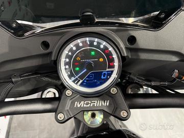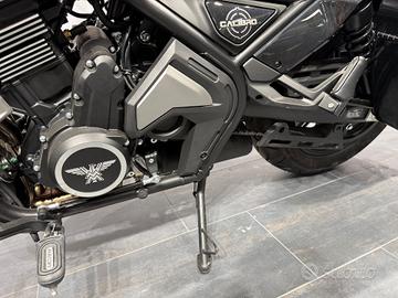 Moto Morini Calibro Bagger 700 CALIBRO BAGGER è pronta a spingere la tua passione oltre ogni confine. Lasciati guidare dal tuo istinto, dalle tue idee, dalla tua immaginazione. Senza farti influenzare dagli stereotipi, dalle mode, da quello che pensano gli altri. Le borse rigide da 19 L ognuna, sono la caratteristica principale che trasforma la classica CALIBRO nella versione Bagger. In questo modo, il suo aspetto risulta essere più completo e accattivante. Disponibili nello stesso colore e materiale della carrozzeria, le borse Quartz Black sono l'accessorio perfetto per questa versione. Il cupolino integrato è il dettaglio che rende CALIBRO la custom per eccellenza. Grazie all'ampio parabrezza che protegge dalle raffiche di vento e dagli insetti, potrai viaggiare anche a velocità sostenuta senza sbilanciarti. L'imponenza e il look accattivante del batwing fa si che CALIBRO BAGGER si inserisca nel segmento dell'American style in modo unico ed inconfondibile. La doppia sella è stata realizzata per rendere piacevoli tutti i viaggi. Grazie ad una consistente imbottitura e all'ergonomicità sia della seduta guidatore che del sellino passeggero, tutti i percorsi potranno essere semplici, divertenti e rilassanti. Il faro anteriore full led permette di viaggiare nelle ore notturne senza impedimenti e con un'ottima visibilità. La sua forma, che richiama lo stile vintage che caratterizza il marchio, identifica CALIBRO nel segmento custom. Il faro full led posteriore è il dettaglio che completa la livrea posteriore di CALIBRO. Il serbatoio metallico è imponente ed iconico. Con la sua capacità di circa 15 L, il serbatoio di CALIBRO è perfetto per contenere il giusto numero di km utili a trascorrere i tuoi weekend fuori porta. Il tappo serbatoio in acciaio è la caratteristica che rende la linea di CALIBRO ancora più fine. Grazie alla strumentazione analogica integrata, potrai controllare le principali funzioni vitali del veicolo. Attraverso un semplice display digitale hai la po