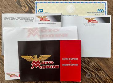Moto Morini Granpasso 1200 - Anno 2014 - 12.500 km Moto perfettamente funzionante e in buone condizioni generali. Unico proprietario, sempre fatta manutenzione e utilizzata poco (circa 1.100 km l'anno). Recentemente eseguito tagliando completo da meccanico di fiducia. Disponibile per qualsiasi prova o verifica presso officina di fiducia, assoluta trasparenza. Dotazioni e miglioramenti: - Attrezzi originali, manuale, libretto garanzia e libretto assistenza - Trattamento Bartubeless ai cerchi (documentato): elimina le perdite tipiche delle versioni originali, mai più problemi di sgonfiaggio. - Batteria al litio, leggera, affidabile e con diversi kg in meno rispetto alla standard. - Porta cellulare impermeabile con doppia presa USB. - Cupolino Givi maggiorato per miglior protezione aerodinamica. - Freni e gomme all'80% di usura. Moto custodita tra box e strada, affidabile e pronta all'uso, non necessita di alcun intervento immediato. Non ha fianchetti carena serbatoio, si ruppero e non furono sostituiti. Wrap nn ero opaco, sotto è la versione carta da zucchero. Per chi volesse rimetterli, si trovano usati. Moto prenotata come permuta, tra poche settimane bisognerà acquistarla dal concessionario.