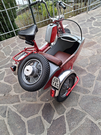Il Sidecar e' stato costruito da un noto artigiano che negli anni 80 aveva l'officina nella Frazione di Moie di Maiolati Sp.. Ne sono stati costruiti solo due esemplari. Completo con ruota di scorta. Motore leggermente elaborato.