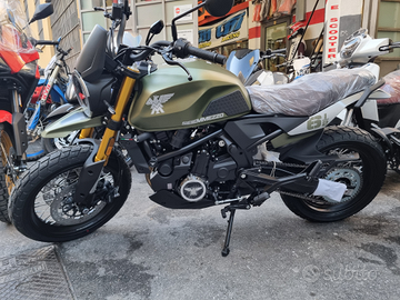 MOTO MORINI SEIEMMEZZO SCR, SCRAMBLER, motore 650 bicilindrico della X-Cape, che viene rivisto a livello di mappa e di scarico. Il telaio in acciaio è dedicato e sono nuove le sospensioni Kayaba, completamente regolabili. L'impianto frenante è Brembo con ABS (non disinseribile). Diametro ruota anteriore, pari a 18 pollici, per dare alla Moto Morini Seiemezzo un feeling più naturale e meno reattivo sulle orribili strade italiane. La moto viene commercializzata in versione standard o limitata a 35 kW (per i possessori di patente A2). La STR è accogliente e pratica, perché la sella a 81 centimetri da terra permette di appoggiare agevolmente i piedi. La SCR monta le gomme tassellate Pirelli MT60 e il manubrio rialzato. Prezzo compreso di promozione, franco concessionario, messa in strada esclusa. Possibilità di permuta ritiro usato. Finanziamento dedicato.