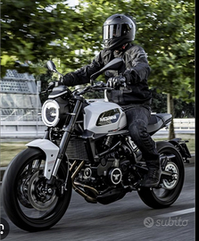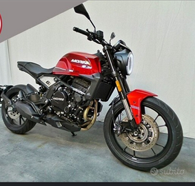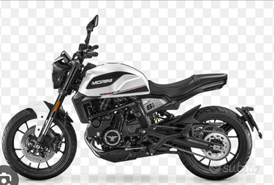 MOTO MORINI SEIEMMEZZO STR, SCRAMBLER, motore 650 bicilindrico della X-Cape, che viene rivisto a livello di mappa e di scarico. Il telaio in acciaio è dedicato e sono nuove le sospensioni Kayaba, completamente regolabili. L'impianto frenante è Brembo con ABS (non disinseribile). Diametro ruota anteriore, pari a 18 pollici, per dare alla Moto Morini Seiemezzo un feeling più naturale e meno reattivo sulle orribili strade italiane. La moto viene commercializzata in versione standard o limitata a 35 kW (per i possessori di patente A2). La STR è accogliente e pratica, perché la sella a 81 centimetri da terra permette di appoggiare agevolmente i piedi. La SCR monta le gomme tassellate Pirelli MT60 e il manubrio rialzato. Prezzo franco concessionario compresa promozione, messa in strada esclusa. Possibilità di permuta ritiro usato. Finanziamento dedicato.