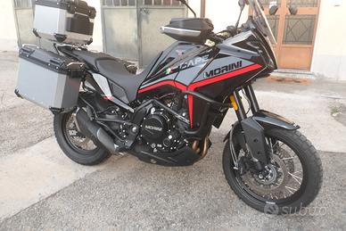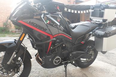 moto morini x-cape 650 adventouring versione ruote a raggi km 3100 come nuova accessoriata con tris bauletti in alluminio originali sella ribassata piu' originale borsello a serbatoio telai paramotore paramani vende MARCHISIO MOTO VEZZA D'ALBA (CN) TEL 0173 65054