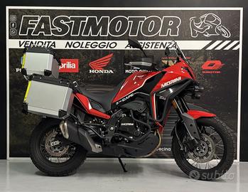 X-Cape è la nuova Adventure firmata Moto Morini.Immatricolata a Febbraio 2024, soli 2.000 chilometri, coperta da 12 mesi di garanzia ufficiale e dotata di paramani,paramotore ,faretti ausiliari, tris valigie e paracalore.Versatilità,divertimento e comfort distillate in una linea futuristica e accattivante tutta Made in Italy. La ruota anteriore da 19'' e la forcella regolabile da ben 50 mmdi diametro, garantiscono una tenuta di strada sorprendente, rendendola adatta ai passi di montagna così come ai sentieri sterrati. La sella dalle dimensioni generose, comoda anche per il passeggero, è posizionata a soli 845 mm da terrae offre un'ergonomia perfetta anche per i più alti. Disponibile anche la versione ribassata a 820 mm da terra. Lo schermo TFT a colori di ben 7'' - frai più grandi dell'intero mercato - dà accesso ad una panoramica completa echiara su tutte le informazioni necessarie ai viaggi più avventurosi, così comenel caotico traffico cittadino. Il parabrezza regolabile con una sola mano, il portapacchi con ampi maniglioni per il passeggero e i fari full led completanola dotazione di serie da classe decisamente superiore. L'impianto frenante, con ABS disinseribile, può contare su un equipaggiamento firmato Brembo. Le forcelle Marzocchi sono totalmente regolabili. Fondamentali per godersi ogni tipo di percorso gli pneumatici Pirelli Scorpion Rally STR. E' possibile organizzare la consegna in tutta la penisola, il prezzo del trasporto è a carico dell'acquirente. Contattateci per qualsiasi informazione.