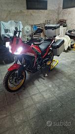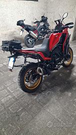 Viene venduta completa di tutti gli accessori originali: Coppia valigie laterali + bauletto, barre paracarene superiori ed inferiori, paracoppa in alluminio, sella rally (ho anche sella in due pezzi di primo montaggio), in più monta i seguenti accessori aftermarket (faretti ausiliari a led, manopole riscaldabili, protezione radiatore in alluminio con logo Moto Morini, protezione serbatoio liquido freni in alluminio con logo moto morini). Pneumatici sostituiti da circa 5.000 km (Pirelli scorpion rally Str).