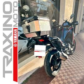 Moto ben accessoriata con bauletto Trekker Alaska in metallo con relativa piastra, e protezione per la scarpa sulla leva del cambio.