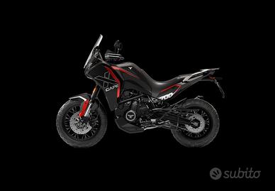 Viscardo Moto la tua concessionaria di fiducia da oltre 50 anni propone in vendita X-Cape 700 ruote a raggi Prezzo di listino Euro 7590 F.C. Spese di immatricolazione non incluse. Nuova Promo: Incluso nel prezzo Tris di Valigie fino al 31/01/2026 Comfort per ogni rider Dal punto di vista estetico, il design è protagonista su questo nuovo modello, che si presenta sul mercato con l'inconfondibile stile X-CAPE e una silhouette ispirata all'ergonomia delle maxi enduro per garantire un'esperienza di guida che fa del dinamismo su strada e in off-road un must. Progettata per gli amanti dell'avventura che cercano prestazioni e comfort, sportività e agilità X-CAPE 700 si caratterizza per una reattività eccellente, grazie al bicilindrico da 700 cc capace di erogare 70 cavalli. La sella dalle dimensioni generose, comoda anche per il passeggero, è posizionata a soli 845 mm da terra e offre un'ergonomia perfetta anche per i più alti. Disponibile anche la versione ribassata a 820 mm da terra. Il parabrezza regolabile con una sola mano, il portapacchi con ampi maniglioni per il passeggero e i fari full led completano la dotazione di serie da classe decisamente superiore. Schermo TFT a colori 7" Lo schermo è tra i più ampi del mercato e permette di avere una panoramica completa di tutte le informazioni relative alla tua moto, sia per viaggi avventurosi, così come per guidare nel traffico cittadino. Un monitor che permette di avere tutti i dati a portata di sguardo anche con luce sfavorevole. È inoltre dotato di connettività Bluetooth, navigazione e sistema di controllo della pressione pneumatici. Offriamo diverse possibilità di finanziamento anche con 24/36 mini-rate con la maxi-rata rifinanziabile in 36/48/60 mesi Ti offriamo anche la possibilità di assicurala con Motoplatinum Box convenzione che ti sconta la polizza fino al 60% se hai una classe di merito. Per altre informazioni, prezzo e promozioni, contattatemi al numero int-1 oppure - 3497
