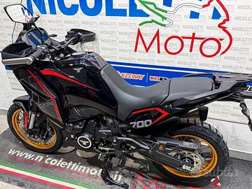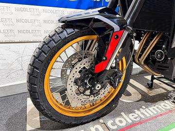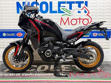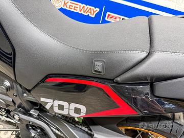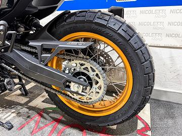 L'equipaggiamento di serie della X-CAPE 700 Gold Edition, si arricchisce ulteriormente, infatti, oltre alle dotazioni presenti nella versione con cerchi a raggi - Pneumatici Pirelli Scorpion Rally STR, mono ammortizzatore KYB con precarico remotato, cavalletto centrale e dashcam - la Gold Edition aggiunge manopole e sella pilota riscaldate, per garantire comfort anche nelle condizioni climatiche più avverse e il sistema di traction control che garantisce miglior sicurezza e stabilità su strada ed è disattivabile in base alle esigenze.