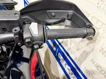 La forcella Marzocchi pluriregolabile a steli rovesciati da 50 mm assicura un'eccellente maneggevolezza su ogni tipo di terreno, assorbendo efficacemente le irregolarità del manto stradale.