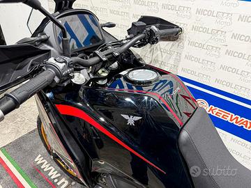 Il parabrezza regolabile, fornito di serie, è il compagno ideale per ogni viaggio avventuroso. Con un semplice gesto, è possibile alzare o abbassare il cupolino in base alle proprie esigenze, offrendo una protezione efficace per pilota e passeggero da vento e intemperie.