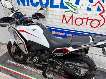 Il parabrezza regolabile, fornito di serie, è il compagno ideale per ogni viaggio avventuroso. Con un semplice gesto, è possibile alzare o abbassare il cupolino in base alle proprie esigenze, offrendo una protezione efficace per pilota e passeggero da vento e intemperie.