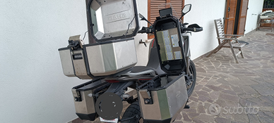 Morini xcape 649 versione cerchi in lega. 25000 km. Tutti gli aggiornamenti fatti. Manutenzione tutta in casa madre. Tagliando appena eseguito con sostituzione catena, corona , pignone con montaggio corona 48 (+3 denti rispetto alla originale) consegno anche corone 47 e 46 denti originale. Telaietti Valigie Givi. Bauletto shad 48 litri . Valigie laterali Kappa mission 36 litri sgancio rapido(monokey). Navigatore in foto non disponibile. Manopole riscaldate Oxford Adventure. Gomma posteriore nuova. Anteriore al 50%. Batteria litio con connettore rapido.