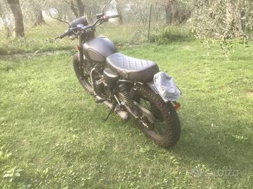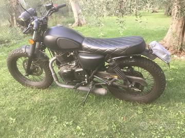 Ecco la mia bellissima perla nera: una tipetta stilosa tutto pepe. Adatta, in virtù del suo basso baricentro, a biker alti e bassi, sia uomini che donne (per le quali sarebbe un ottimo regalo...), oppure a coloro che vogliano iniziare con garbo l'attività motociclistica, questa moto è estremamente maneggevole nonché facile da guidare. Il suo stile dark british (viene assemblata a Birmingham in Inghilterra) sembra esca dalla scenografia di un film del regista Guy Ritchie; iconica nell'estetica, è sempre stata fonte di sguardi ammiccanti e spesso foto rubate. Non ne vedrete molte in giro, come le ormai inflazionate Harley e company, in quanto sostituisce la fama ad una sobrietà di classe. Categoria scrambler cafè race, colore nero opaco, gomme tassellate, ha sempre funzionato perfettamente, mai graffiata caduta o impattata; consuma pochissimo; agilissima nel traffico cittadino rappresenta la migliore soluzione per non cadere nell'oscena trappola dello scooter. È anche molto leggera nel caso vogliate la sua compagnia in una vacanza con camper caravan. Revisione, Tagliando e controllo completo effettuato il giorno 20/10/2025 da officina assistenza autorizzata Mutt. Prezzo 2700 euro, disponibile a mostrarla in zona Trento, Verona o sud Garda (se sono belle giornate)