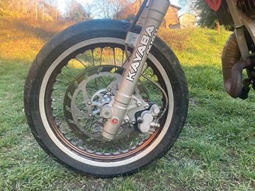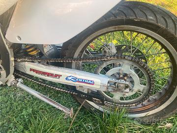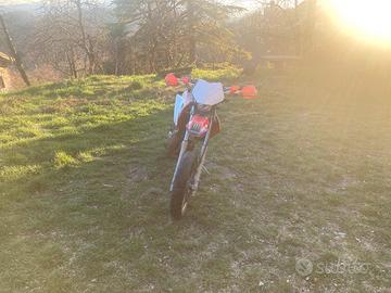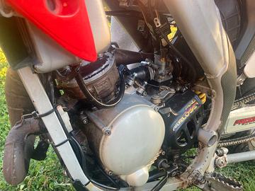 La moto è un HM CRM 50, é un 50cc (truccato 90cc), é stato immatricolato il 07/2006 ma nel 2012 sono stati sostituiti il motore, la marmatta e lo scarico, mentre nel 2019 la mascherina attenteriore e nel 2022 ho sostituito la batteria. l’impianto elettrico è perfettamente funzionante e nel prezzo sono compresi sia il motore (50cc), la marmitta e lo scarico originali. É un 2 tempi, ha il miscelatore quindi è alimentato a benzina e ha il serbatoio dell’olio.