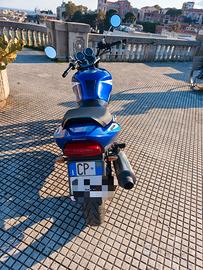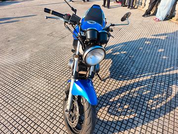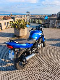 Vendo moto naked Suzuki GS 500 E € 1.300,00 km 58.300. - Immatricolata il 23 settembre 2005 e in normali condizioni generali (segni di usura derivanti dall’età). - Motore bicilindrico da 487 cc, cv 48, 169 kg a secco, guidabile anche con patente A2 - Agile, divertente anche per motociclisti di ritorno e leggera, con un buon rapporto peso/potenza e quindi prontissima e nervosa ai bassi regimi, oltre che con un bel sound. Ideale per il commuting cittadino casa/lavoro/scuola, non disdegna tragitti sulle medie distanze (anche con zavorrina), grazie alla presenza della sella lunga e di un serbatoio da ben 20 litri. La consiglio in particolar modo per i neofiti, piuttosto che acquistare una depotenziata: all'inizio i rischi di far cadere una nuova moto per inesperienza non sono pochi. Ottima anche per chi ha innanzitutto la priorità di districarsi facilmente in mezzo al traffico cittadino ma comunque divertirsi (io la utilizzo quasi fosse uno scooter). Si presta molto ad essere modificata in una café racer/scrambler: il suo telaio a doppia culla in acciaio è relativamente facile da lavorare, permettendo modifiche al telaietto posteriore per accorciare la sella e creare uno stile café racer, o l'adozione di pneumatici tassellati e manubri alti per uno stile scrambler. Si distingue per avere un motore robusto e una meccanica semplice ed affidabile: 0 noie, 0 guasti, no elettronica, no Abs, no aiuti, no accessori non omologati (salvo indicatori di direzione, ma posseggo anche gli originali), piacere di guida allo stato puro. Ho eseguito ogni anno ordinaria manutenzione, annotando sul libretto di istruzioni gli interventi. Tenuta sempre in garage, sebbene utilizzata in ogni condizione meteo. La vendo dopo ben 19 anni di onorato servizio, dopo averla acquistata con un anno e 1/2 di vita, per passare prossimamente ad uno scrambler di cilindrata maggiore. Nessun tipo di scambio. Max trasparenza e disponibilità per qualsiasi ulteriore info.