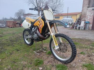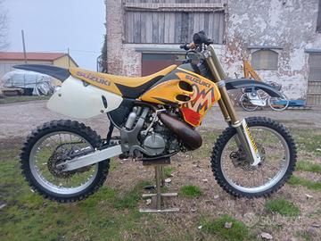 vendo moto cross Suzuki RM 250 2T anno 1995, pistone sostituito di recente, corona nuova , moto conservata sana , perfettamente funzionante