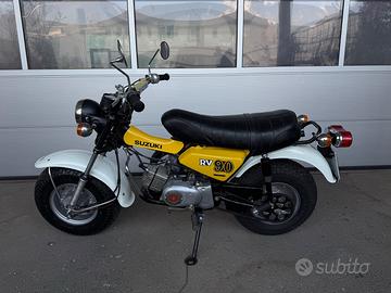 Suzuki RV 90 in perfette condizioni, praticamente mai usata, 227 KM originali !!! come nuova, originale in ogni parte, sospensioni posteriori nuove, batteria nuova, completamente revisionata, sempre in garage, nessun segno di ruggine o ossidazione, targa originale Bolzano, mese giugno 1980, iscritta ASI, moto pronta e regolare da passaggio.