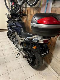 Moto tenuta sempre in garage mai caduta ha solo dei righetti sul serbatoio causati dal proprietario precedente. Completa di borse rigide, para motore,faretti, protezione mani, cavalletto centrale , doppie chiavi sia moto che borse , appena tagliandata la vendo per inutilizzo.Passaggio di proprietà a carico dell'acquirente. Valuto anche scambio con vespa PX 125 .